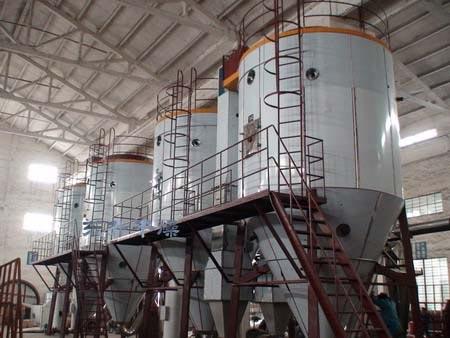 2. پس از فیلتر کردن و گرم کردن، هوا وارد توزیع کننده هوا می شود که در بالای خشک کن قرار دارد.، هوای گرم مارپیچی به طور مساوی وارد محفظه خشک کردن می شود. مایع مواد از طریق اتومایزر گریز از مرکز با سرعت بالا، که در بالای بدنه برج قرار دارد، به یک دانه مایع مه بسیار ریز پاشیده می شود، با هوای گرم تماس پیدا می کند و در مدت زمان بسیار کوتاهی می تواند به عنوان محصولات نهایی خشک شود. محصولات تمام شده به طور مداوم از پایین برج خشک کن و جداکننده سیکلون، توسط فن اگزوز که باعث تخلیه هوا می شود، خارج می شود.